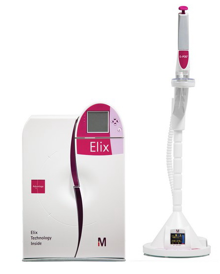 Система Elix предназначена для получения воды аналитического качества (тип II). Имеется возможность подключения до 3-х точек отбора, на которые выведена вся необходимая информация и функции управления, что значительно упрощает работу и позволяет получать очищенную воду непосредственно в месте ее использования. Индикация параметров работы системы осуществляется с помощью цветных ЖК-дисплеев, расположенных на точках отбора, а также на основном блоке системы. В системе применяются различные технологии очистки, в том числе обратный осмос и электродеионизация. Использование ультрафильтрационного финишного фильтра на точке отбора позволяет получать апирогенную воду с низким содержанием нуклеаз.