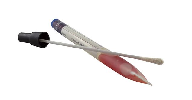 Вскройте стерильную упаковку, извлеките сваб, обработайте площадь, приблизительно равную 10×10 см. Вскройте тубу с питательной средой, открутив крышку, поместите в среду сваб с адсорбированным материалом, плотно закрутите крышку. Инкубируйте материал при соответствующей температуре.